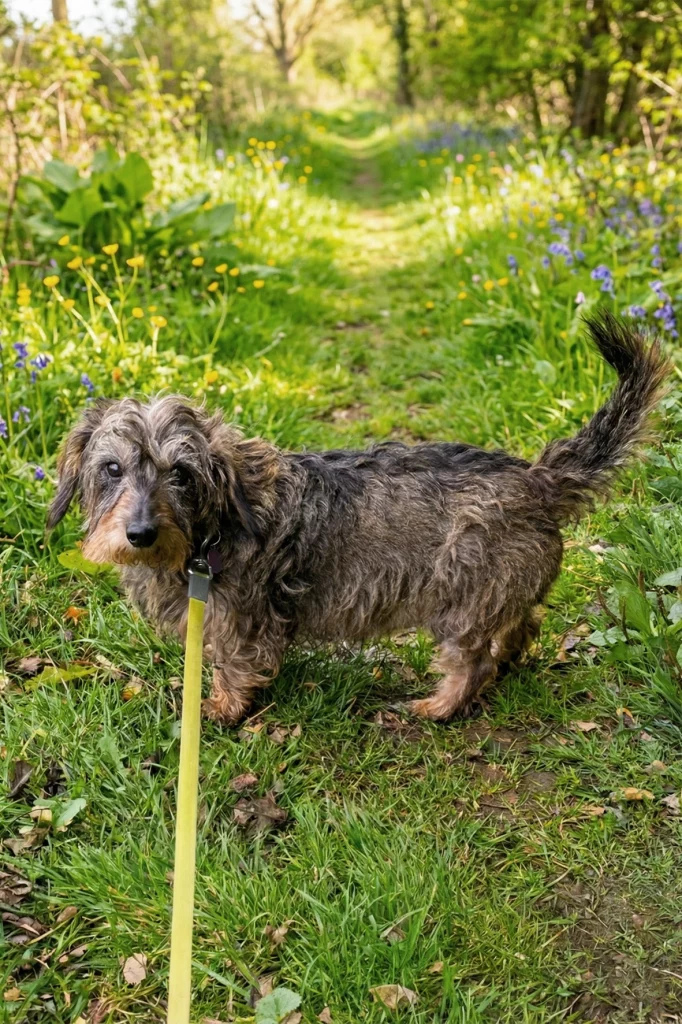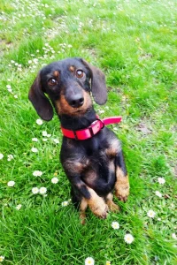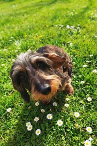 Race / Apparence : Teckel naine à poil dur, couleur sanglier