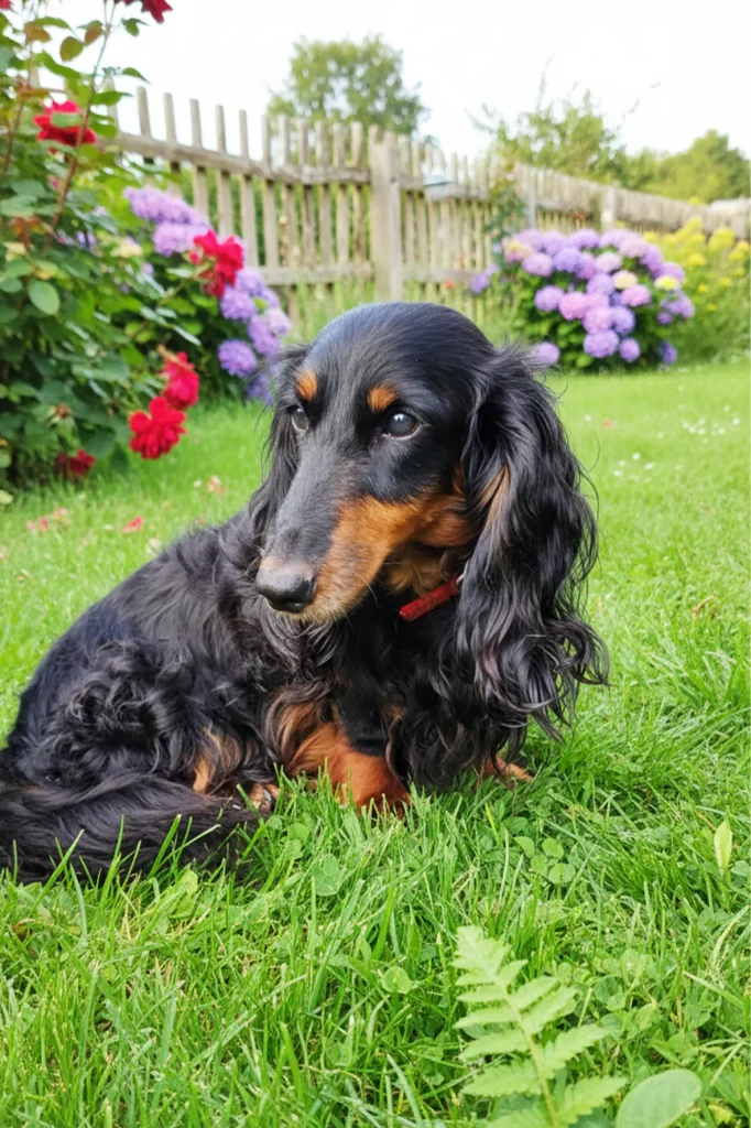 Race / Type : Teckel nain à poil long noir et feu