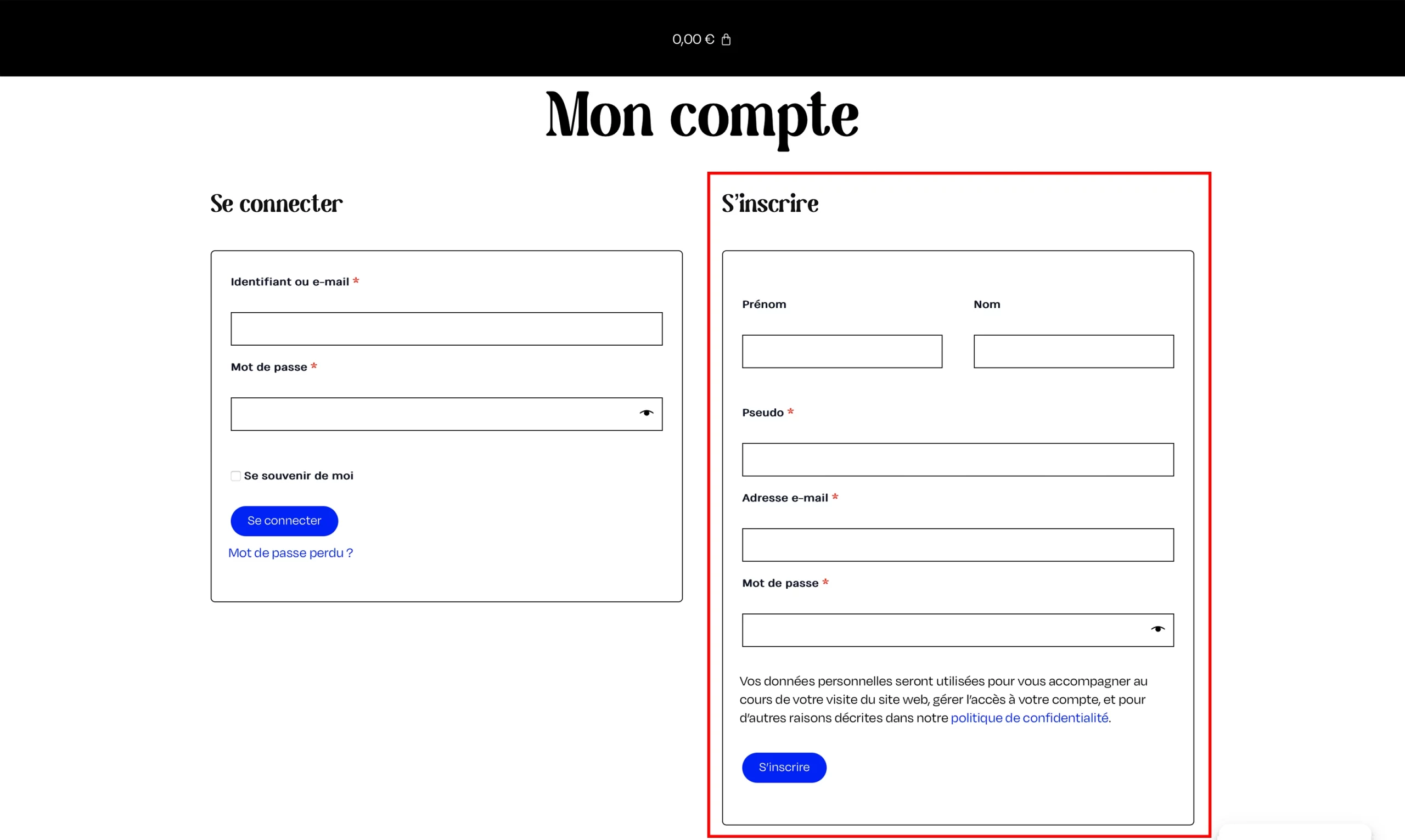 2 – Cliquez sur “S’inscrire”
