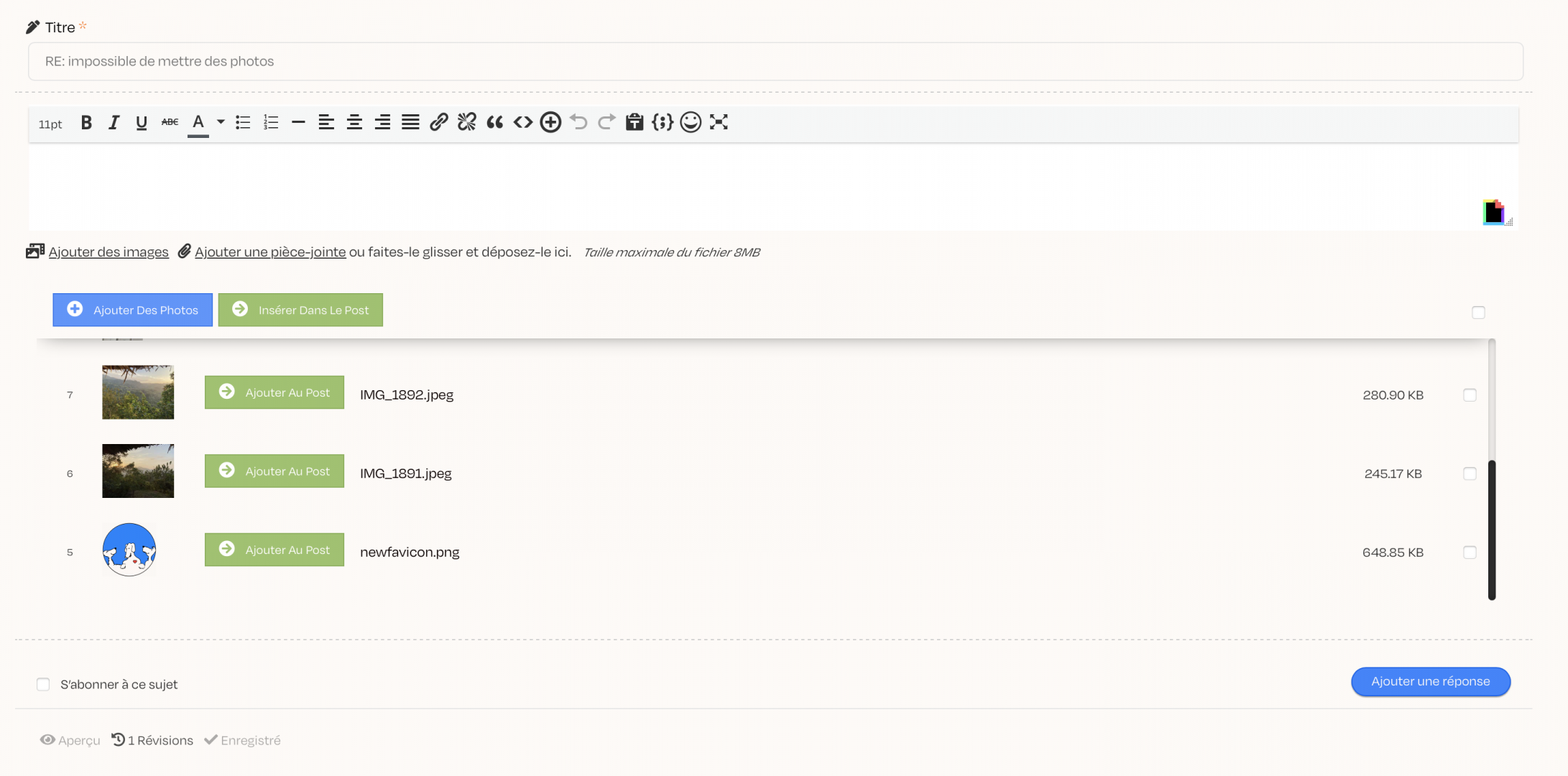impossible de mettre des photos