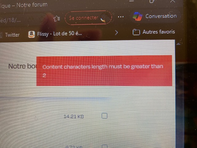 @cloclo Ce n’est pas une erreur technique. Le message indique que votre post contient moins de 2 caractères et ne peut donc pas être publié. Afin d’ajouter des images, je vous invite à vous référer à ce post “Comment ajouter des images à vos messages ?”