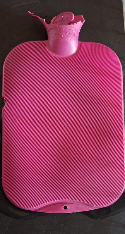 Voici ce qu est devenue la bouillotte de Dario, le temps que j aille voir mes plantes au jardin…j ai demandé qui avait fait ce forfait mais ce n était personne