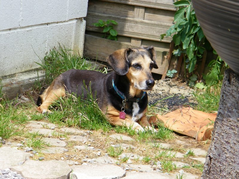 Dina se prend pour un petit teckel et se repose sur mes genoux