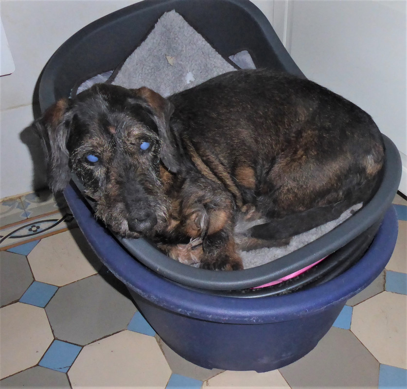 Coucou la belle, ouh tu m’as l’air bien têtu, une petite teckel comme on les aime