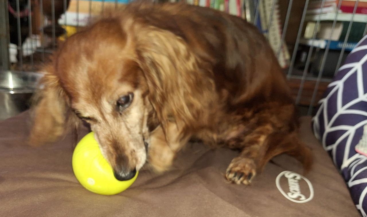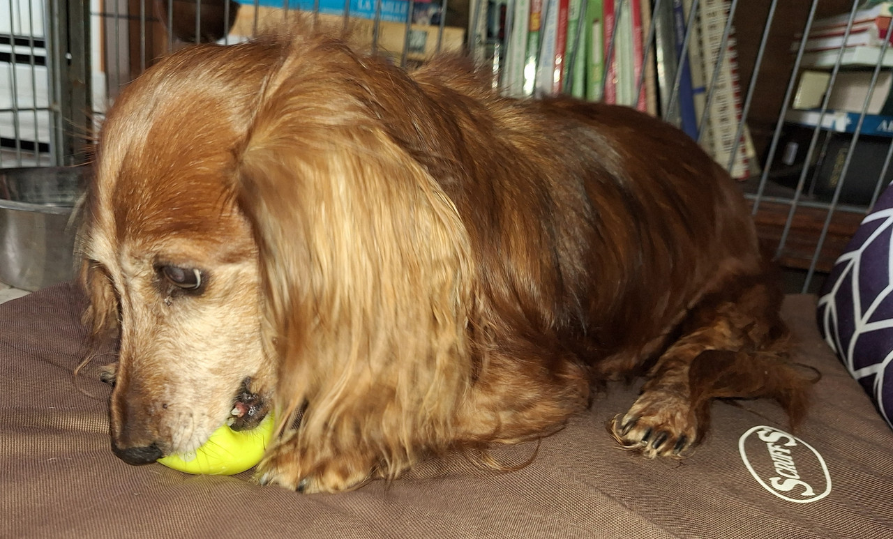Grenadine la coquine. Elle ne marche plus avec ses pattes avant. On a mis un tapis à mémoire de forme qu elle adore.