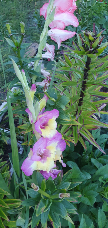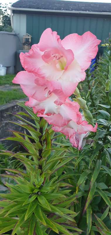 c’est au tour des glaïeuls de fleurir…Malheureusement l vent les font courber.Ils ont un bon mois d’avance.Ensuite viendront les dalhias….