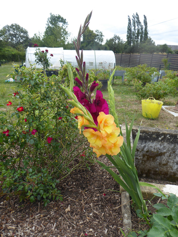 Voici le temps des derniers glaïeuls et des dalhias… le rosier est magnifique.