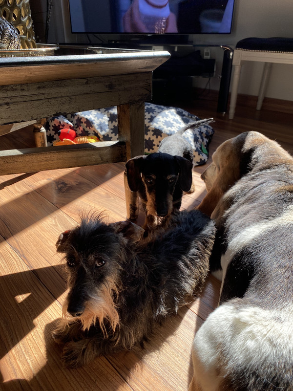 Belle vie commune à tous, caresses à la meute (chat compris)