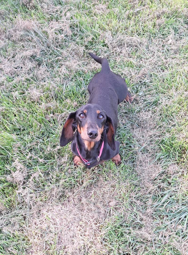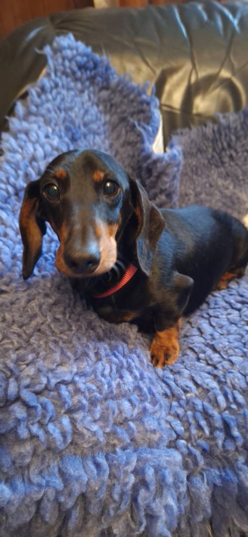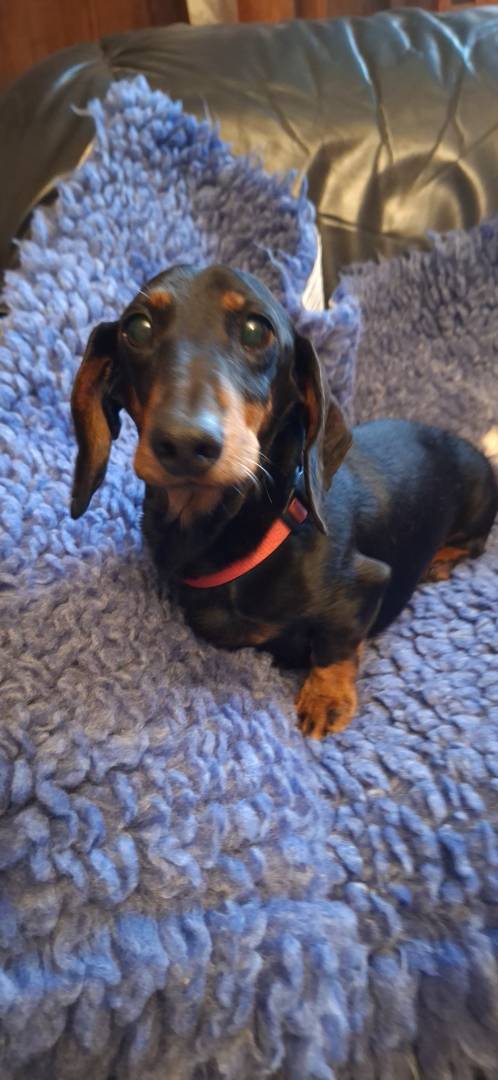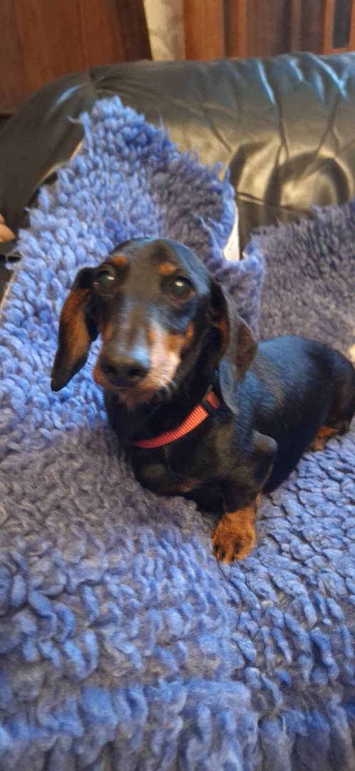 Race / Apparence : teckel nain poil ras noir et feu