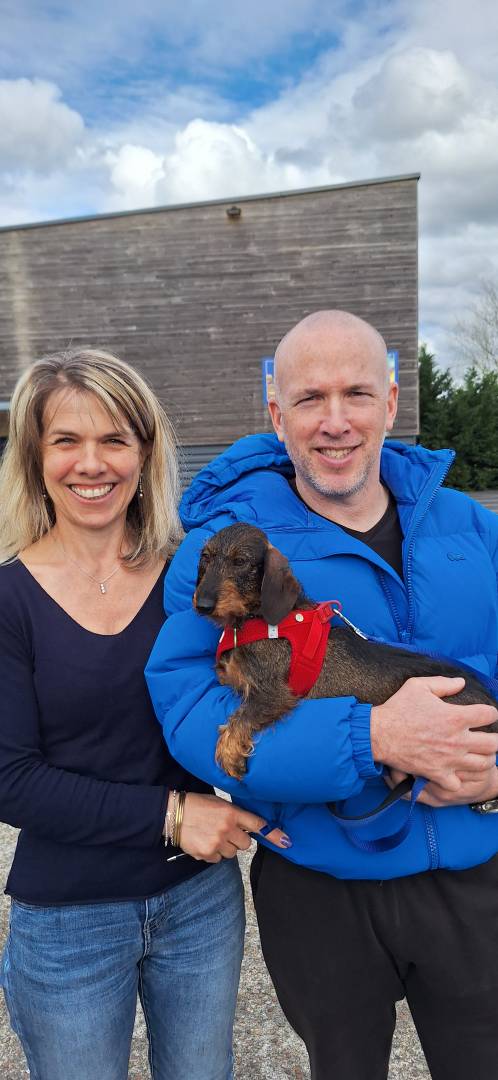 STERENN est une adorable teckel, elle va directement vers les humains et est vraiment adorable et affectueuse, par contre pas de chat pas de volaille pour elle ! C’est une petite anguille très rapide.