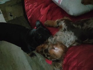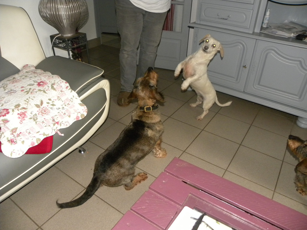 Comme tu vois je suis très occupé à jouer avec mon copain Rustik je suis très heureux dans ma nouvelle famille "chiens" et "humains".