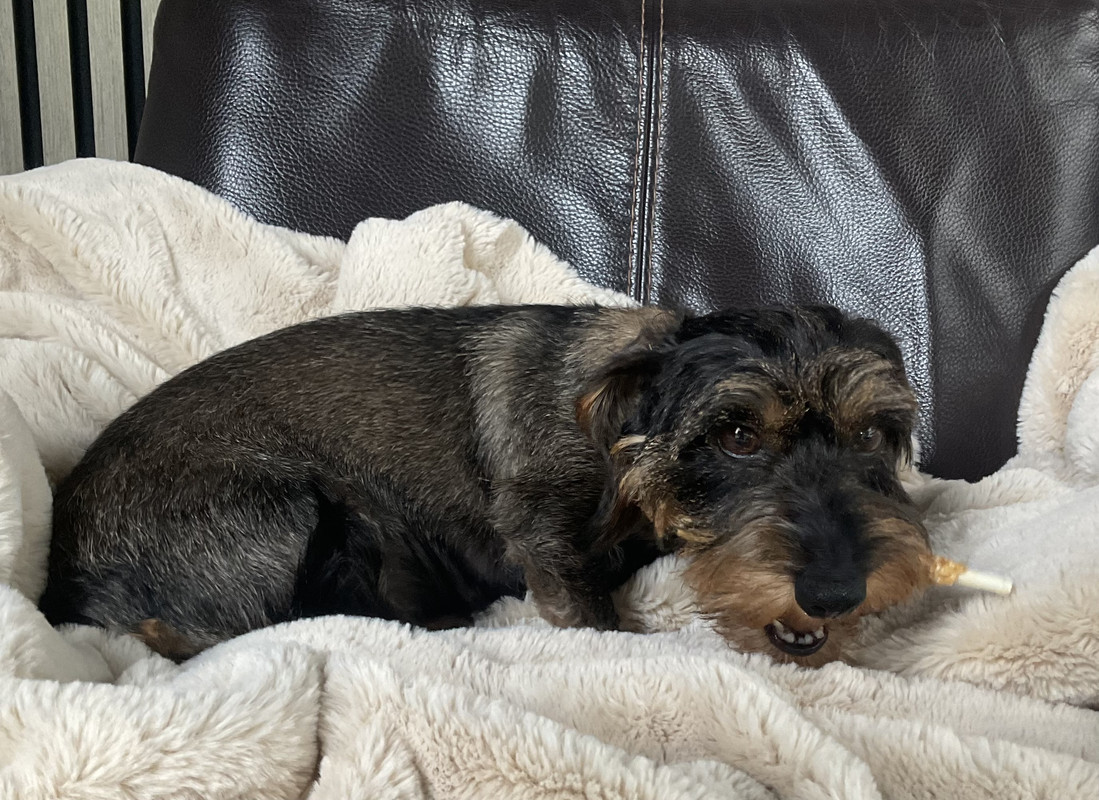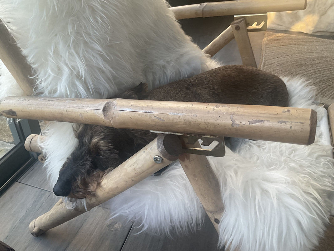 Ma Noria fait sa princesse, elle préfère ronger son os sur le canapé de la véranda