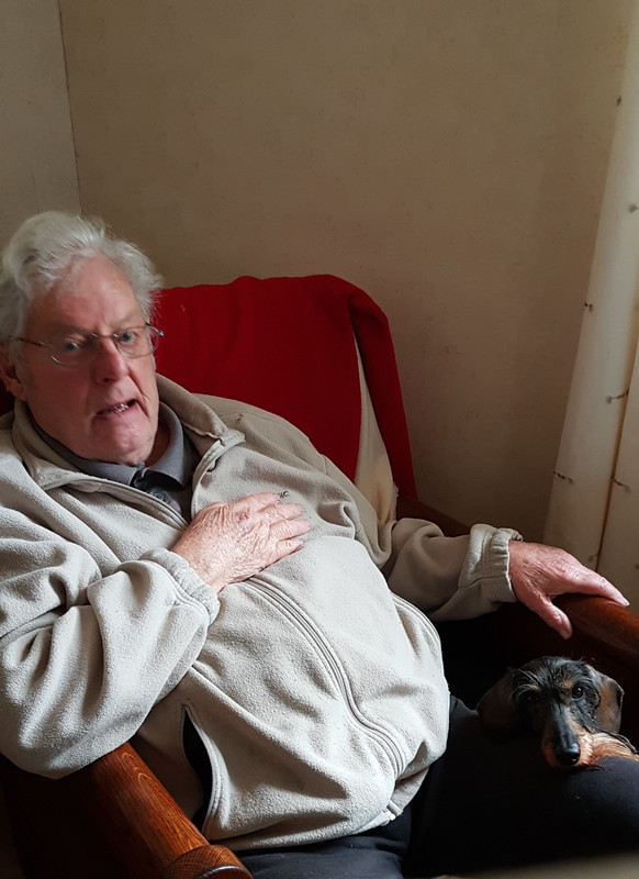 Là il est couché, contre ma cuisse dans le fauteuil, la tête appuyée sur ma cuisse.