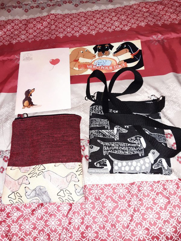 Du bout du monde, nous avons bien reçu les magnifiques pochettes …Lulu a un peu grossi, elle ne tient pas dedans…