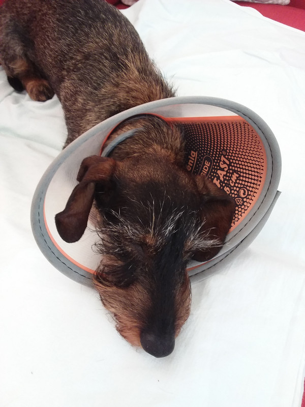 la collerette est de rigueur bien sûre et j’avoue ma petite cherie si joyeuse est bien tristounette