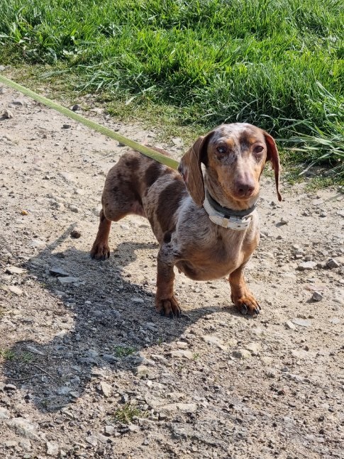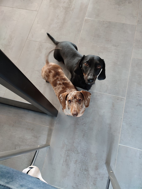 quelle jolie petite teckel qui a trouvé sa famille de coeur .
