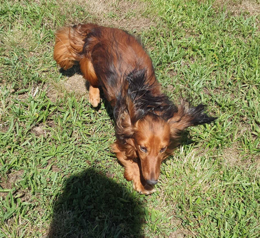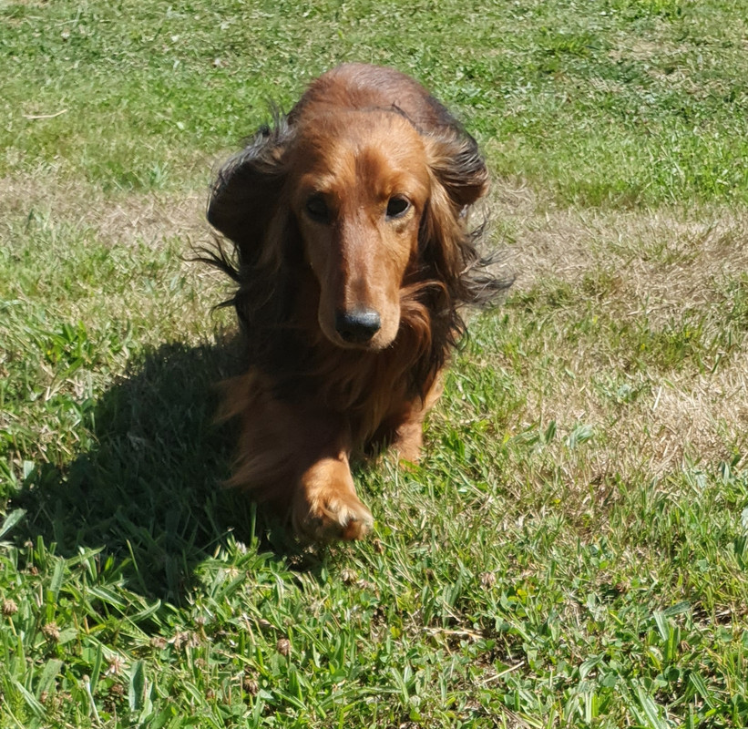 DAPPARENCE : Teckel nain poil long fauve charbonné