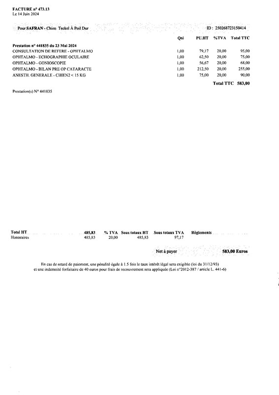 Voici la facture de l’ophtalmo :