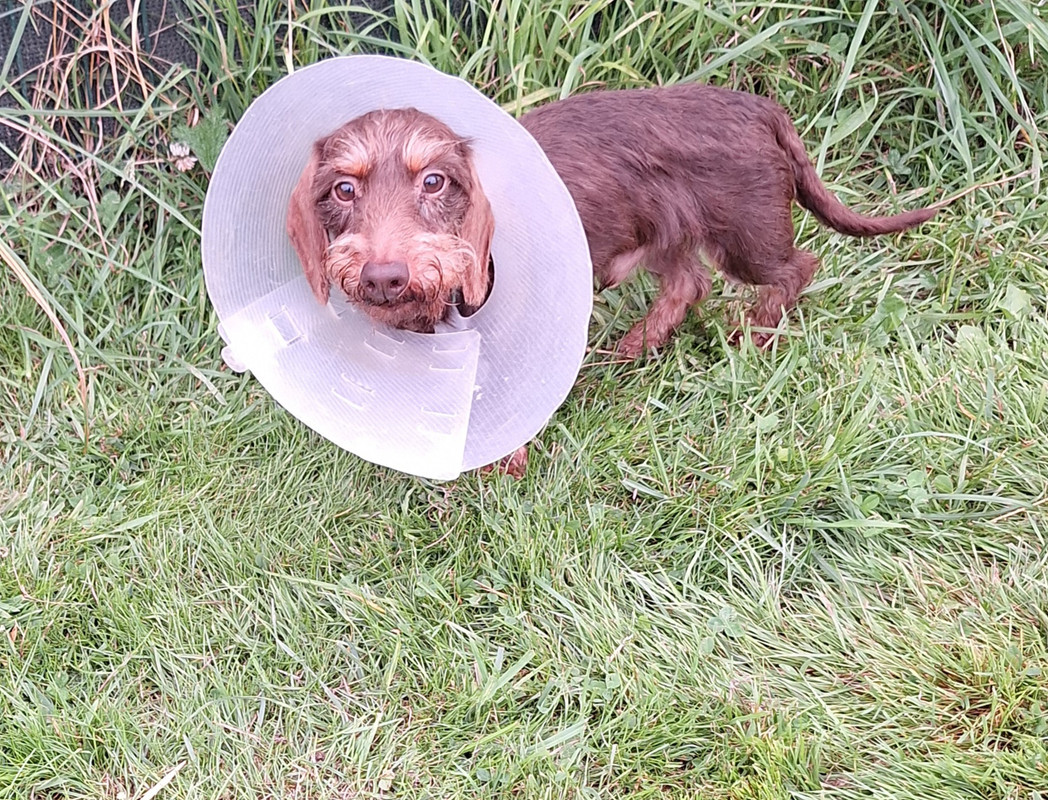oh non. Jespère rien de grave. ( hernie discale ? Grrrrr) pourtant il est en cage en grand repos . Son dos a peut souffert de lintervention