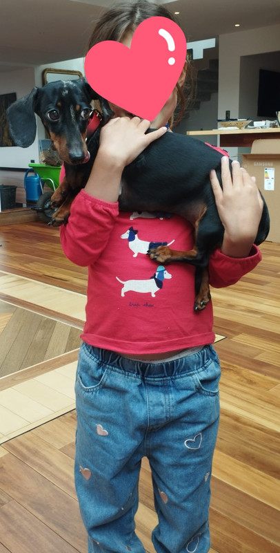 La petite Valentine avec Rose, une petite que nous connaissons et qui ressemble à sa grand mère. ..Elle a un teckel chez elle, non 2 teckels et lorsqu elle va chez sa grand mère, elle en a 3 autres à poil ras…